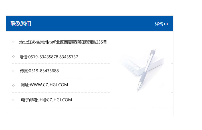 地址:常州市新北區友邦商務大廈1幢16、17層  電話:0519-85101652  傳真:0519-85112595  郵編:213022  網址:www.cz-jiayue_cn.gzhty.com  郵箱:xiajifengaa@163.com